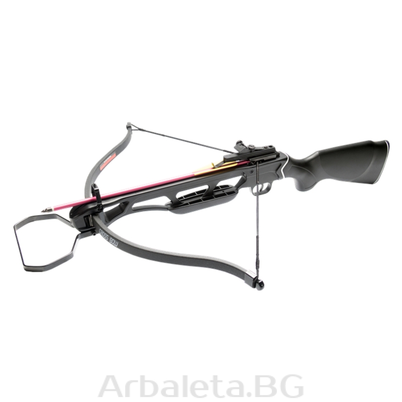 Комплектът арбалет Man Kung MK-150A1PB има добро качество на изработка и представяне в клас за начинаещи. Включва арбалет, оборудван със система за наблюдение и 2 алуминиеви стрели с накрайници за спортна стрелба.