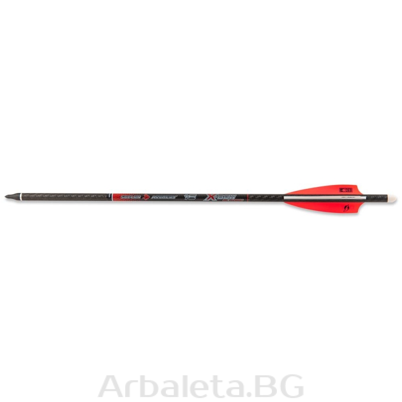Стрелата за арбалета Skylon Carbon е изработена от 100% карбон. Снабден с вложка и накрайник с резба 11/32 от 100 зърна, стандартни 4-инчови пера и Half Moon nock.