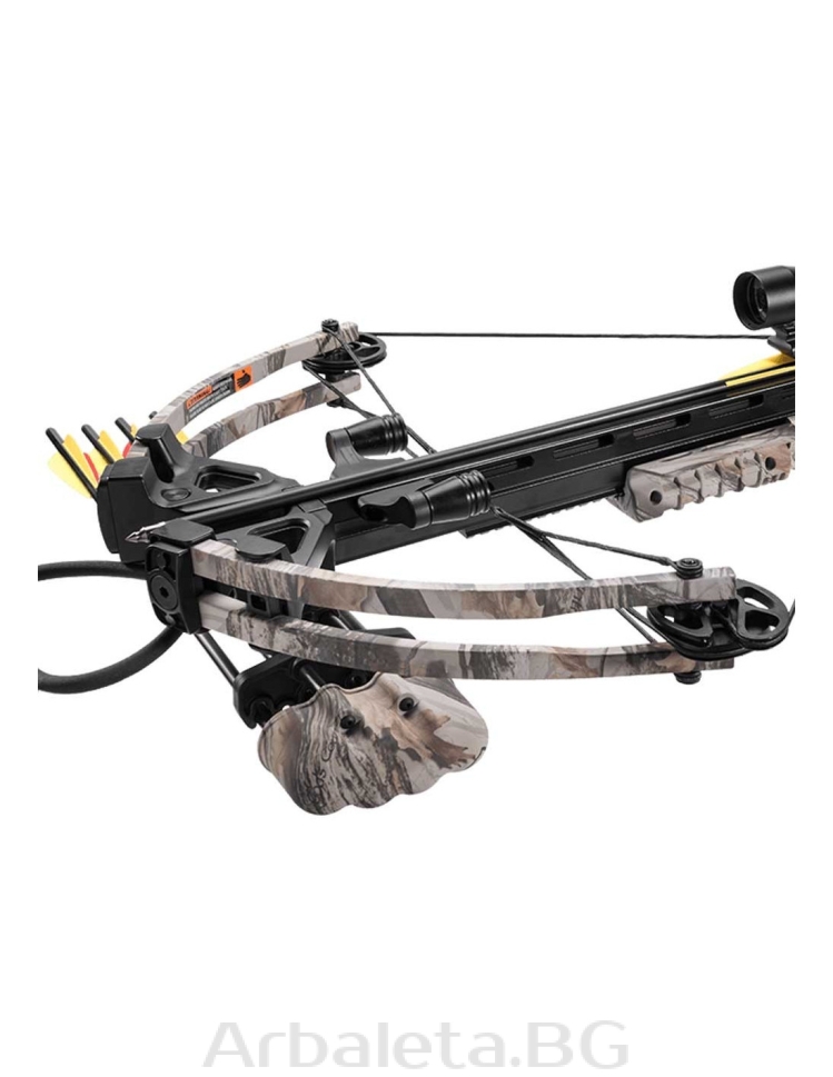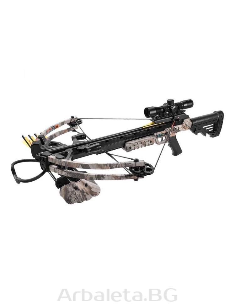 Комплектът включва арбалет, оборудван със система за прицелване с лупа 4 × 32, 4 алуминиеви стрели с дължина 20 инча (51 см), оборудвани с накрайници за спортна стрелба и подвижен бункер за стрели, механизъм за зареждане с въже, восък за релси и задно въже.