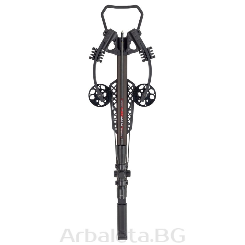 Комплектът включва арбалета, оборудван със светеща мерна система 4×32, 3 карбонови стрели със завинтващи се върхове, подвижен колчан за стрели, механизъм за зареждане тип въже, както и смазка за пистата.