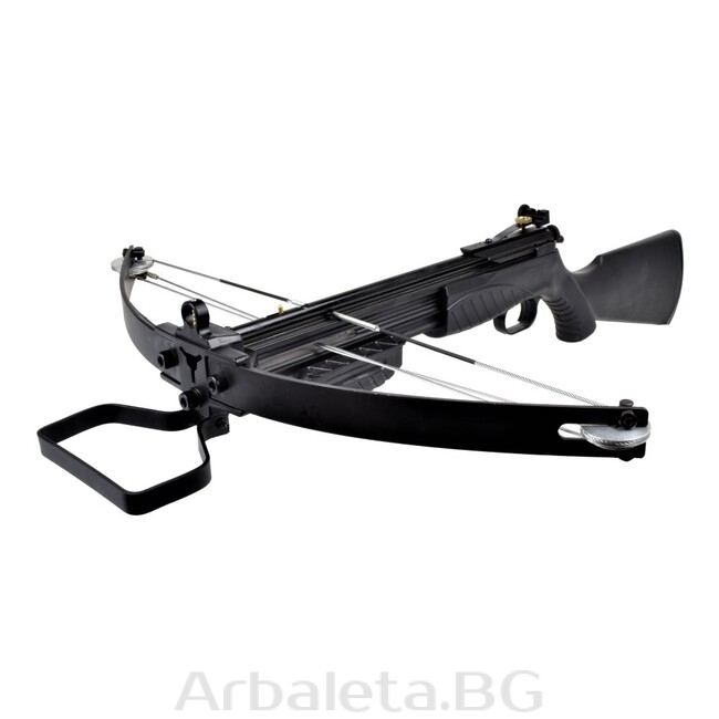 Сложен арбалет модел JS-ARCHERY Beast с теглене на тегло до 80 lbs. Въжето се дърпа на ръка. Този модел може да стреля със специални болтове с дължина 3" и стоманени топки с диаметър 8 mm. Болтът достига скорост до 140 fps (43 m/s).