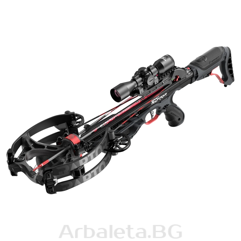Hyper Raptor™ превъзхожда всеки аспект на производителност, с въртящи се джобове за крайници и параболични крайници, които натоварват по-малко предната част на арбалета, като същевременно създават по-издръжлива платформа за стрелба с намален откат и вибрации.