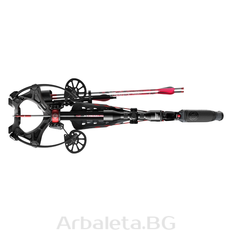 Hyper Raptor™ се отличава във всеки аспект на вдъхновен от производителността дизайн и технология. С лек композитен щранг и измерване малко над седем инча от ос до ос, когато е вдигнат, арбалетът предлага отлична маневреност при лов в тесни пространства. Неговите въртящи се джобове за рамена поставят по-малко тежест в предната част на арбалета, като същевременно създават по-издръжлива платформа за стрелба с намален откат и вибрации. Със своя компактен и енергоефективен дизайн, Hyper Raptor™ изпраща стрели HyperFlite™ с малък диаметър надолу с невероятна скорост - до 410 фута в секунда и 142 фута. lbs. енергия за максимално раздробяващо костите проникване.