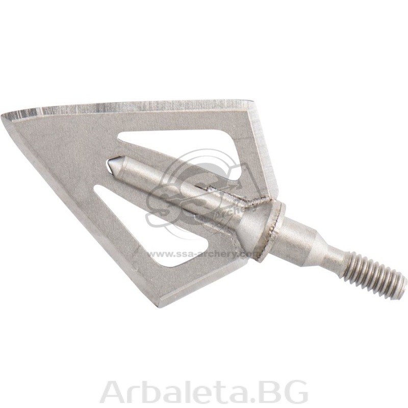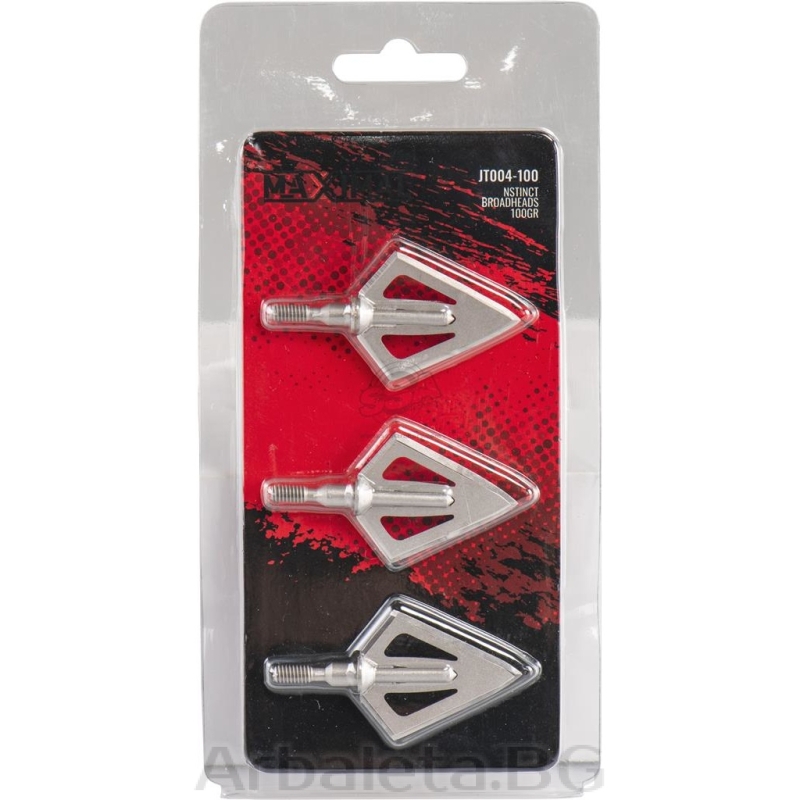 Силен и издръжлив фиксиран накрайник с 2 остриета от Maximal. Диаметър на рязане 100гр: 1,12" / Диаметър на рязане 125гр: 1,26" / 32мм Остриетата се заточват лесно, оригинален ъгъл на заточване 25° Материал: неръждаема стомана