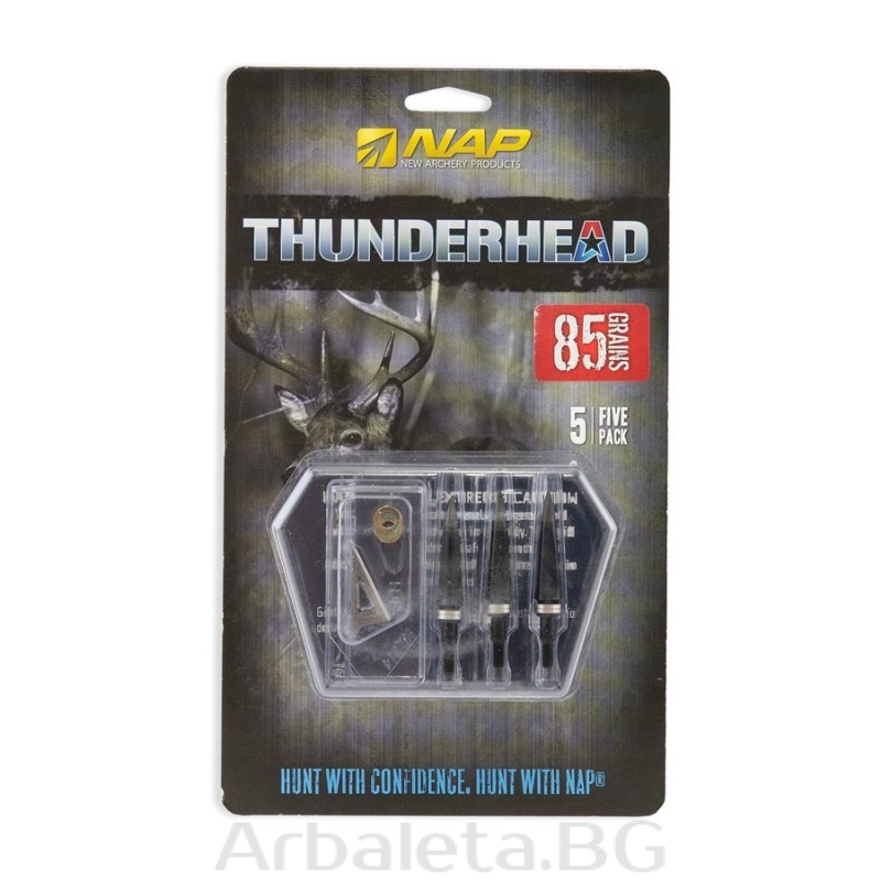 Thunderhead е широко признат като най-добрата бормашина с фиксирано острие, създавана някога. Най-острите остриета. Най-добро качество. През годините с Thunderhead са уловени повече животни, отколкото с което и да е друго копие - Микронабраздено накрайник Slimline®: Патентованото микронабраздено накрайник значително увеличава точността на полета и пробивната сила. Никой друг накрайник в света не лети толкова точно, колкото Thundherhead, и точка - Заточени остриета Diamize™: Процесът на заточване Diamize™ създава най-острите остриета в индустрията за огромна сила на поразяване и поразяване. Това са най-острите остриета, създавани някога. По-остри остриета означават по-бързи убийства - Диаметър на рязане: 1 3/16"