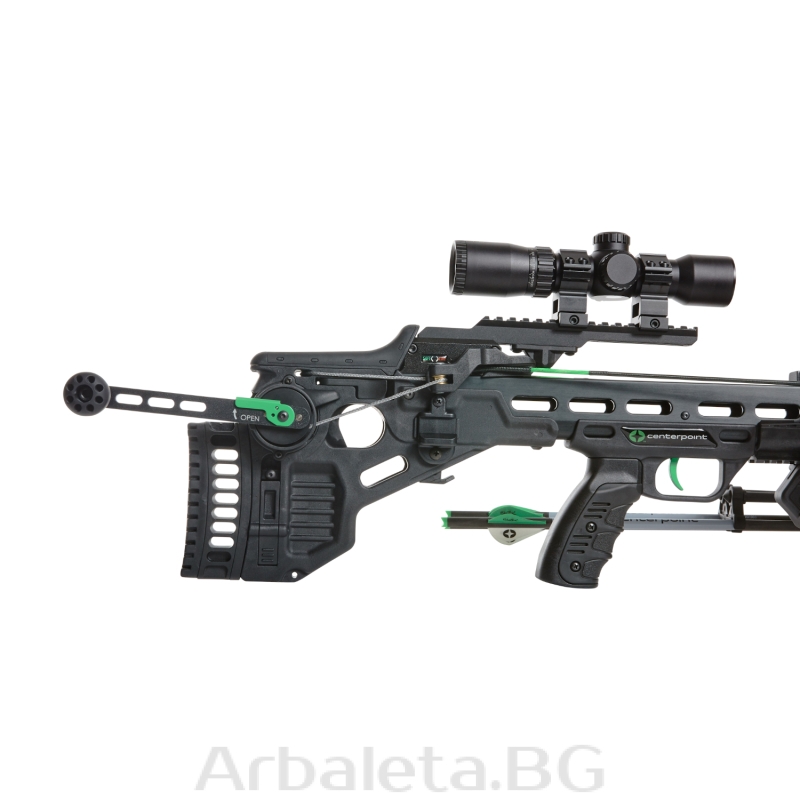 Невижданите досега функции на CenterPoint включват напълно интегрирана система за безшумно спускане с автоматично прибираща се шейна за спускане и осветен оптичен прицел 1,5-5x32 mm.