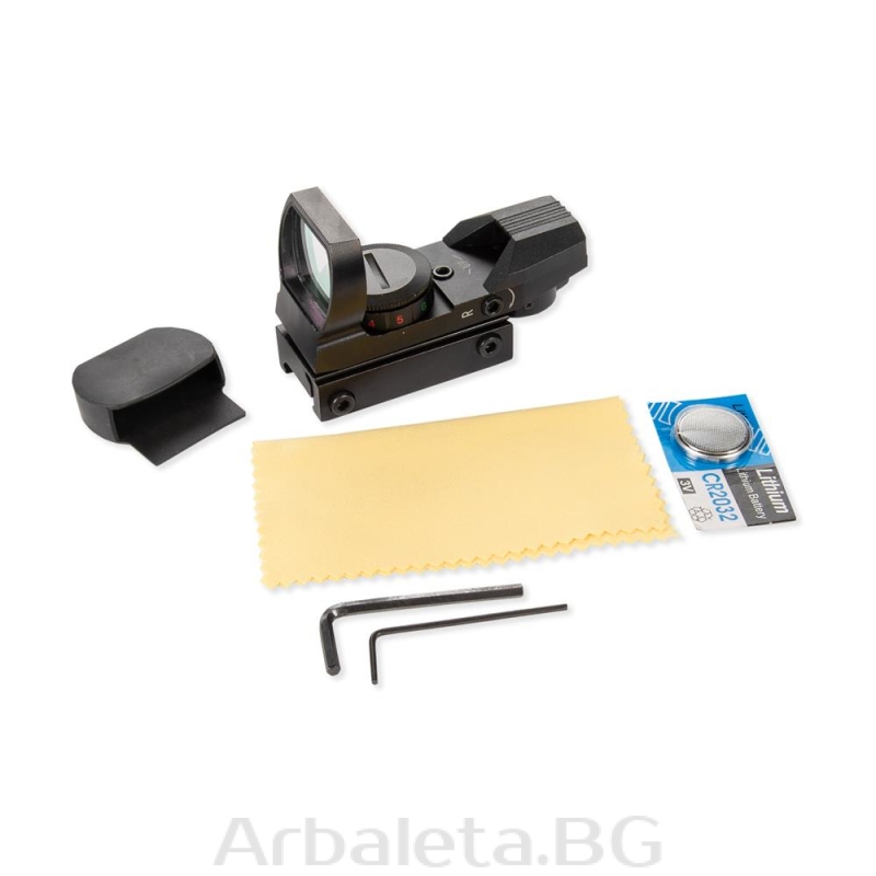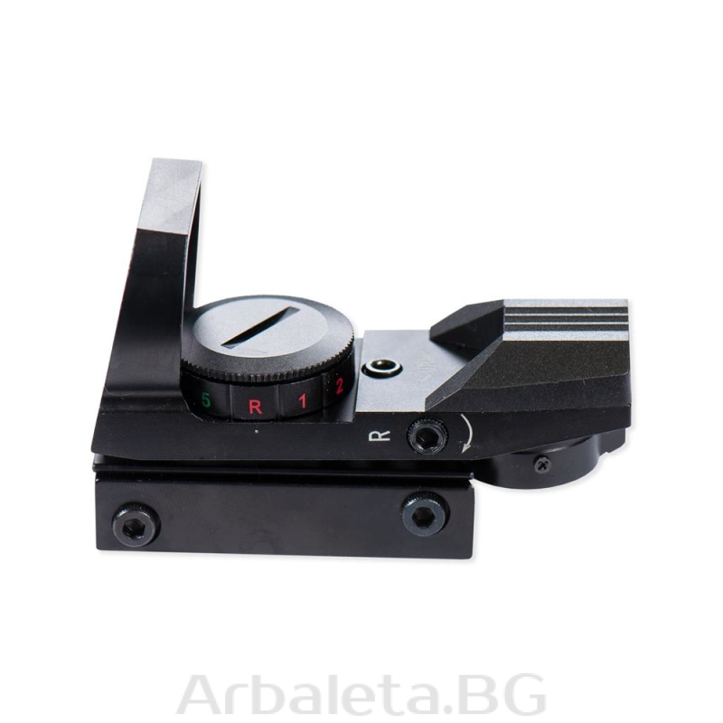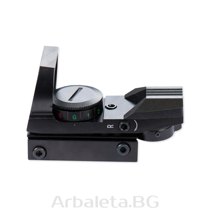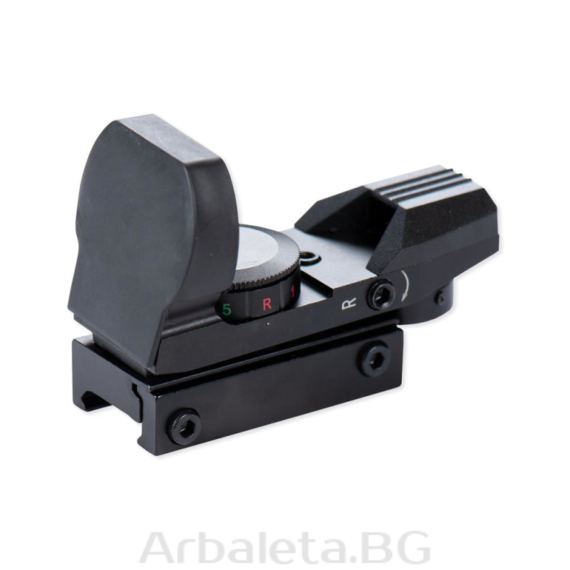 Sistem ochire pentru arbaleta de tip red dot Junxing Drakon cu punct de ochire in trei modele diferite. Reglabil ca intensitate luminoasa, iluminare verde sau rosu. Reglaje pe verticala si orizontala. Compatibila cu sina picatinny, include bateria tip CR2032.