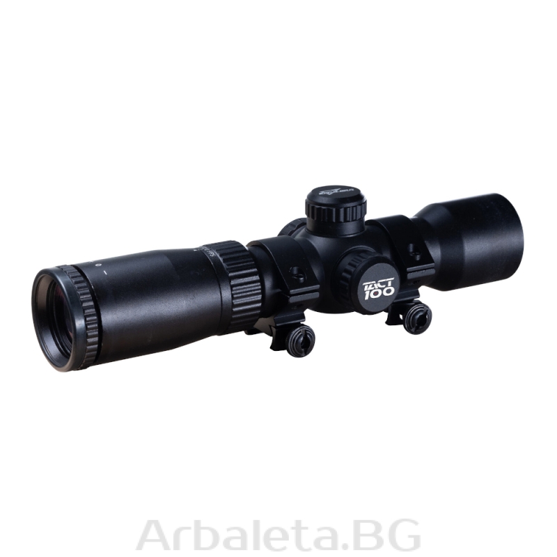 Luneta Tact-100 pentru arbaletă, dotată cu reticul multiplu iluminat Fast Point, optim pentru 100 de yarzi, este ideală pentru practica țintirii sau antrenamentele la distanțe mari. Astfel, când tragi la distanțe adecvate pentru vânătoare, te va ajuta să efectuezi tirul cu precizie când este cel mai important.