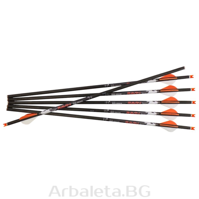 Sageata pentru arbaleta din carbon Ravin 500 este realizata din carbon 100%, include inserturi metalice si nock-uri speciale din polymer. Greutate – 500 grains, incluzand varful infiletabil de tir sportiv de 100 grains. Pretul se refera la un pachet de 6 bucati. Liniaritate garantata 0.003 inch.