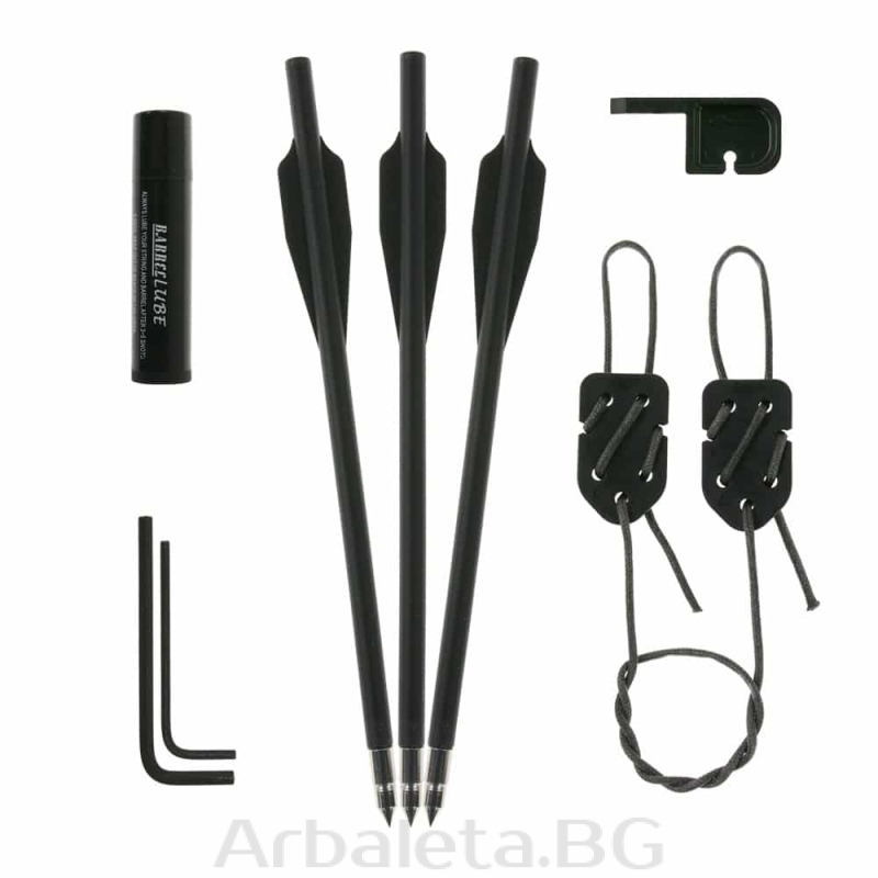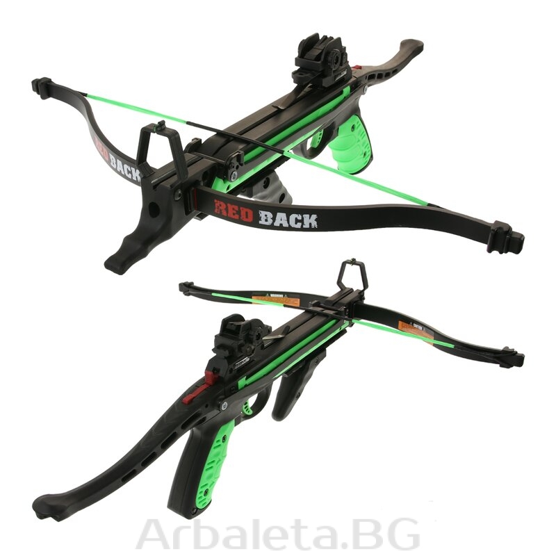 Pistolul arbaleta Hori-Zone Redback este extrem de usor de incarcat, are o constructie calitativa excelenta si are o viteza a sagetii de peste 235 fps. Include sistem de ochire tip peep si maner reglabil. Materialele folosite sunt aluminiu si ABS pentru corpul pistolului si fibra de sticla pentru brat. Setul include 3 sageti de 6,5 inch (16.5 cm) cu varf metalic, mecanism de punere a corzii, ceara de coarda si imbusuri pentru montaj.