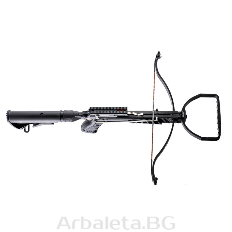 Include 5 sageti Stinger practice, 2 corzi, mecanism pentru punerea corzii, stock ajustabil compatibil AR-15.