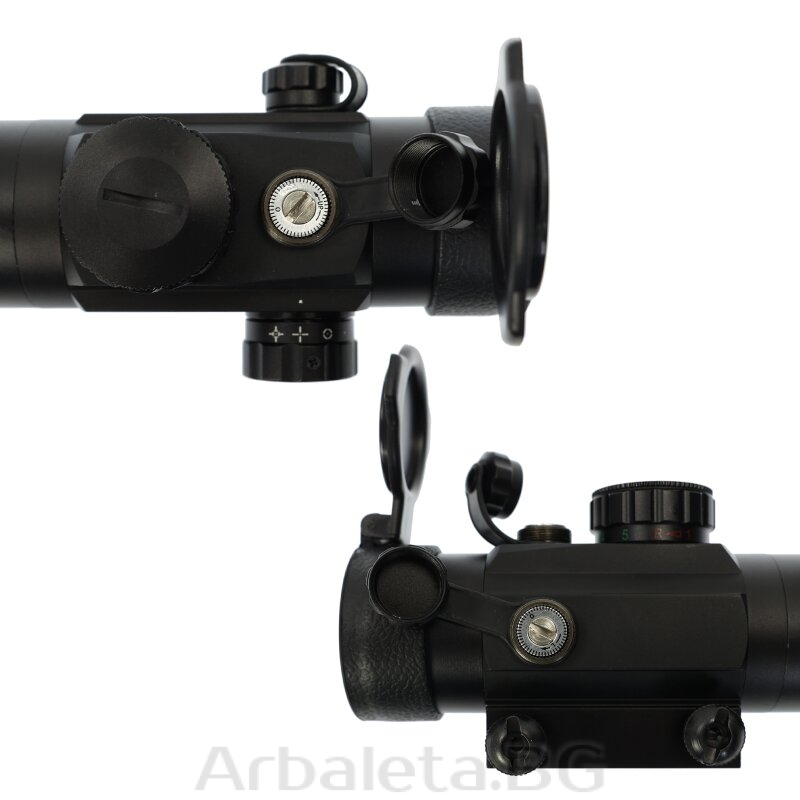 X-BOW FMA Multi Dot 2x40 nu numai că arată foarte robust datorită construcției sale metalice de înaltă calitate, dar chiar este. Pentru a ține pasul cu exteriorul durabil, lentilele sunt protejate de praf și murdărie prin capace de protecție în față și în spate. Punctul iluminat, probabil cea mai importantă caracteristică a întregului vizor, poate fi iluminat în roșu sau verde, iar intensitatea sa poate fi reglată în 5 trepte pentru a se potrivi diferitelor condiții de iluminare. Punctul iluminat poate fi reglat individual pentru a se potrivi perfect trăgătorului. Puteți alege între un punct iluminat clasic, un cerc țintă cu un punct în mijloc, o cruce și o combinație a acestora, o cruce cu un cerc țintă. Desigur, punctul de ochire poate fi ajustat și în înălțime și în lateral. Optica poate fi montată convenabil și ferm pe șina Picatinny a arbaletei cu ajutorul capacului cu șurub.
