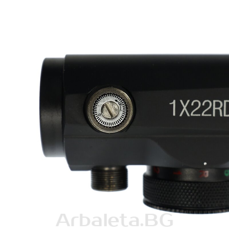 RD22 Red Dot de la X-BOW fma este fabricat într-o construcție metalică robustă și are un punct iluminat roșu sau verde care poate fi ajustat la distanță cu o simplă ajustare laterală și pe înălțime. Punctul iluminat, probabil cea mai importantă caracteristică a întregului vizor, are o dimensiune de 4 MOA (minute unghiulare) la o distanță de 100 m, iar intensitatea sa poate fi reglată în 5 trepte pentru a se potrivi diferitelor condiții de iluminare. Lentilele de 20 mm sunt protejate de praf și murdărie prin capace de protecție în față și în spate și permit un câmp vizual de aprox. 12,6 m (la 100 m). Acest lucru înseamnă că ținta este suficient de mare atunci când se țintește și poate fi văzută clar și fără distorsiuni datorită lentilelor simple fără mărire. Pentru o montare ușoară pe arbaleta, Red Dot are un suport integrat pentru șine de 22mm (Picatinny) pentru montarea lunetei, care este atașat cu ajutorul unui șurub Allen.