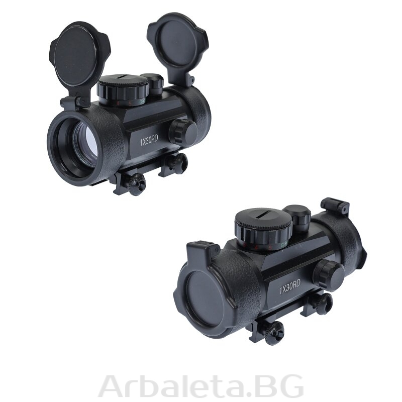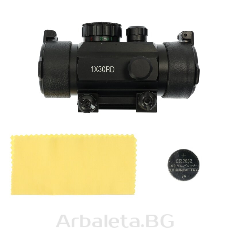 Punctul roșu RD30 de la X-BOW FMA vine într-o construcție metalică robustă și are un punct iluminat roșu sau verde care poate fi ajustat la distanță cu o simplă ajustare laterală și pe înălțime. Punctul iluminat poate fi reglat în 5 niveluri de luminozitate și are o dimensiune de 5 MOA (minute unghiulare) la o distanță de 100m. Cu lentile de 30 mm, RD30 oferă un câmp vizual de 19 m (la 100 m), care este suficient de mare atunci când se vizează ținta și poate fi văzut clar și fără distorsiuni datorită obiectivului simplu fără mărire. Lentilele în sine sunt protejate de praf și murdărie prin capace de protecție în față și în spate. Pentru o montare ușoară pe arbaleta, Red Dot are un suport integrat pentru șine de 19mm (Weaver) și 22mm (Picatinny) pentru montarea lunetei, care este atașat cu ajutorul a două șuruburi.