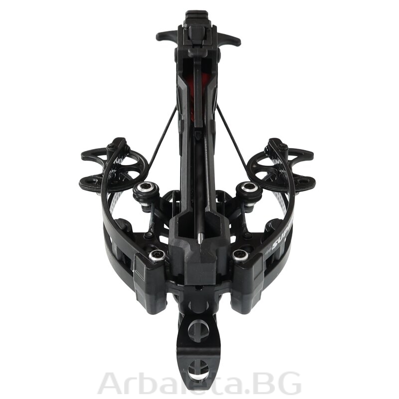 Arbaletă compactă X-BOW FMA Supersonic - 120 lbs / 250 fps X-BOW fma Supersonic a revoluționat piața arbaletului compact! Este o arbaletă compactă puternică care aplică în mod consecvent principiul compusului și atinge cifre de performanță de neconceput anterior. În ciuda dimensiunii sale ultra-compacte, are o greutate de tragere de 120 kg și generează viteze ale bolțului de până la 274 km/h (cu bolțurile cu impact ridicat recomandate). Acest lucru îl face potrivit pentru distanțe de tragere de până la 60 m. Astfel de valori au fost cunoscute până acum doar de la arbalete mai mari! Un alt punct culminant este sistemul inovator de cablu cu care Supersonic poate fi, de asemenea, armat confortabil. Pur și simplu trageți mânerul din spate și declanșați arbaleta. Sistemul de tensionare este conceput în așa fel încât forța maximă care trebuie aplicată pe întreaga lungime a Power Stroke să nu depășească 52lbs.