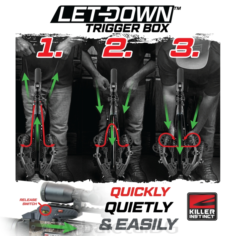 Ceea ce diferențiază LOGIX™ 435 este tehnologia Let-Down™ Triggerbox, o inovație patentată care permite decocarea arbaletei în siguranță și fără a trage un foc. Această funcționalitate elimină riscul de "dry-fire" și face experiența de utilizare mult mai sigură și mai convenabilă.