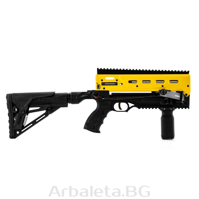• Design Ergonomic: Fabricată din polimer de înaltă calitate cu fibră de sticlă, arbaleta cântărește doar 1.8 kg și dispune de un pat retractabil cu obrazar reglabil.