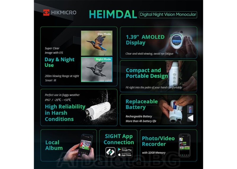 HikMicro Heimdal H4D, Cameră Night Vision UHD cu Stabilizare Digitală